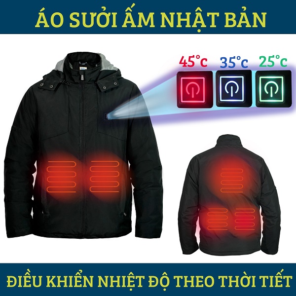(áo sưởi điện dài tay giúp làm ấm toàn bộ cơ thể khi đi ngoài trời lạnh)