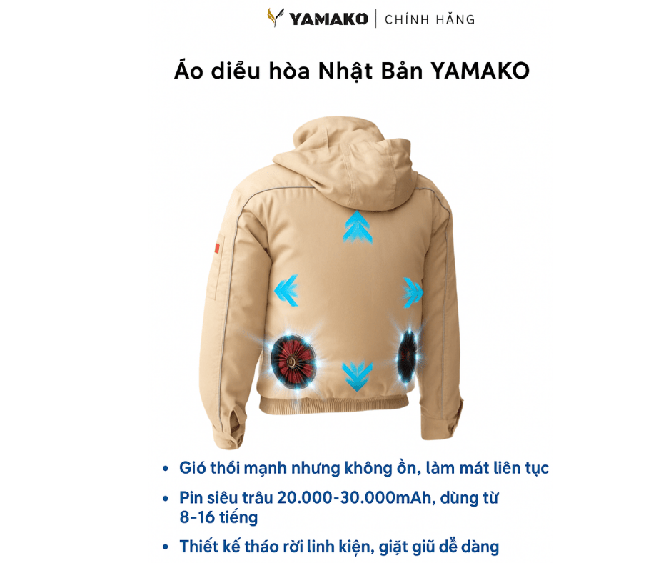 Với mức giá chỉ từ 950.000đ – 1.399.000đ, bạn đã có thể sở hữu một bộ áo điều hòa kaki chính hãng Yamako, đầy đủ pin, quạt, sạc. Đây là khoản đầu tư xứng đáng để đảm bảo: