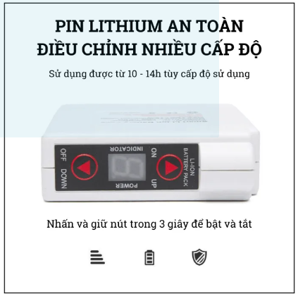 - Pin Áo điều hòa GiFV 2024 sử dụng dung lượng 36,000mAh có khả năng chạy liên tục mức số lớn nhất từ 11h – 12h, khi giảm xuống ở mức 3 có thể chạy liên tục trong 14h-16h
