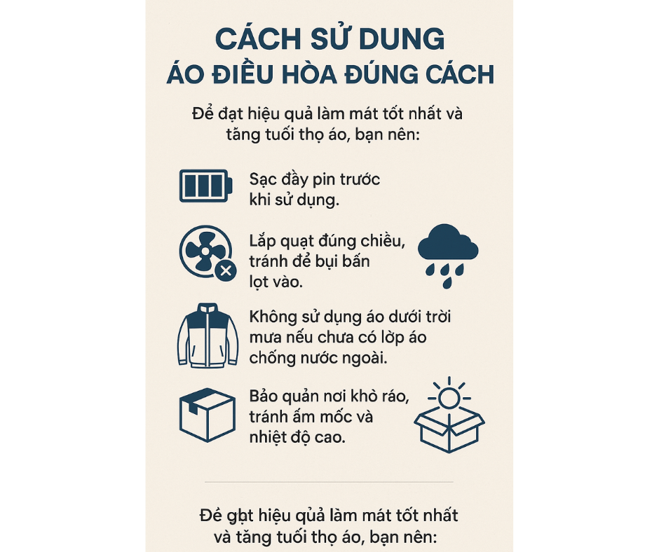 Để đạt hiệu quả làm mát tốt nhất và tăng tuổi thọ áo, bạn nên:
