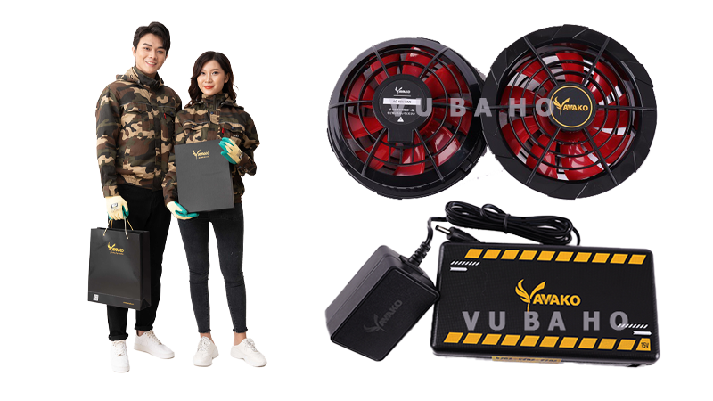 Quạt gắn áo điều hòa: Hai chiếc quạt gió mini có nhiệm vụ hút không khí từ bên ngoài vào bên trong áo. Tạo ra luồng gió mát lưu thông trong người giúp đẩy nhanh quá trình thoát mồ hôi.