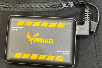 - Pin áo sưởi: Sử dụng pin 10.000 mAH để làm nóng các tấm nhiệt Carbon trong áo, làm nóng toàn bộ áo sau 1 giây.