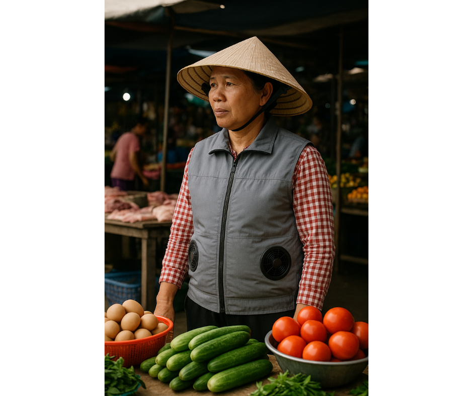 💡 Dù bạn đứng bán thịt, cá, rau hay quần áo – áo điều hòa vẫn giúp bạn giảm nóng, đỡ bức bí, ngay cả trong khu chợ có mái tôn hoặc bạt nóng rực.