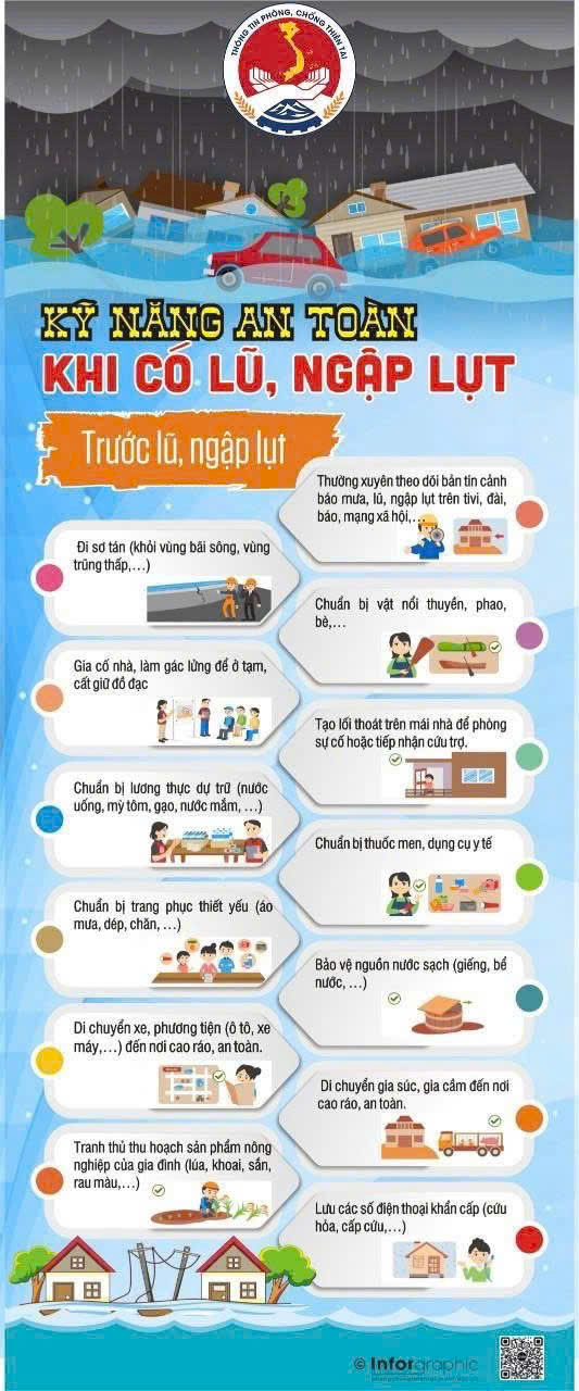 Quản lý thoát nước: Chủ động khơi thông cống thoát nước gần nhà, khu dân cư để tạo đường thoát lũ. Khi phát hiện sự cố về tắc nghẽn cống thoát nước hoặc các điểm ngập sâu, cần thông báo kịp thời tới chính quyền địa phương. Đặc biệt, cần đề phòng ngập tầng hầm chung cư.