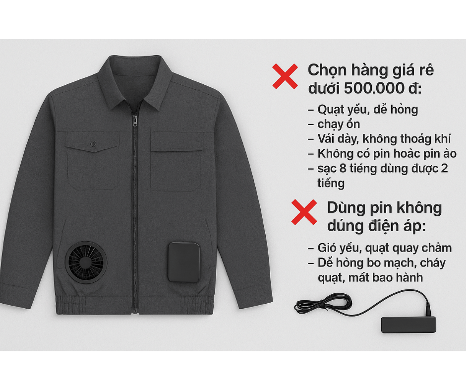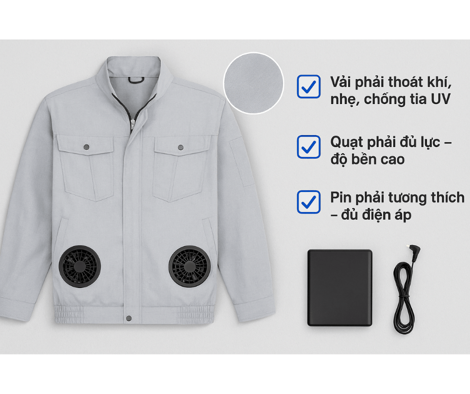 Nhiều người nghĩ đơn giản: áo điều hòa = gắn quạt là xong. Nhưng sự thật không đơn giản vậy.