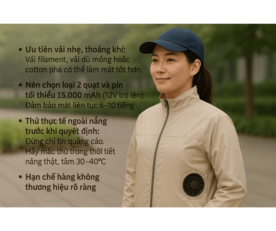 🎯 Thử thực tế ngoài nắng trước khi quyết định: Đừng chỉ tin quảng cáo. Hãy mặc thử trong thời tiết nắng thật, tầm 30–40°C.