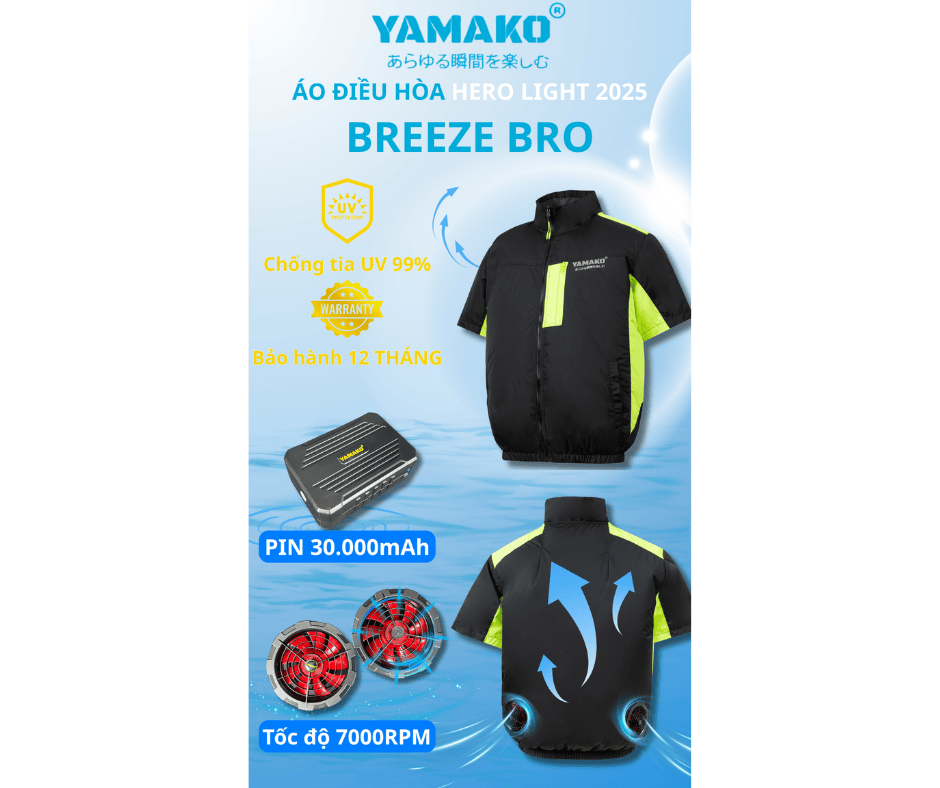 🎯 Gợi ý: Yamako Hero Light 2025 – vải filament Nhật Bản, gió tỏa đều, khô ráo tức thì, không bí mồ hôi.