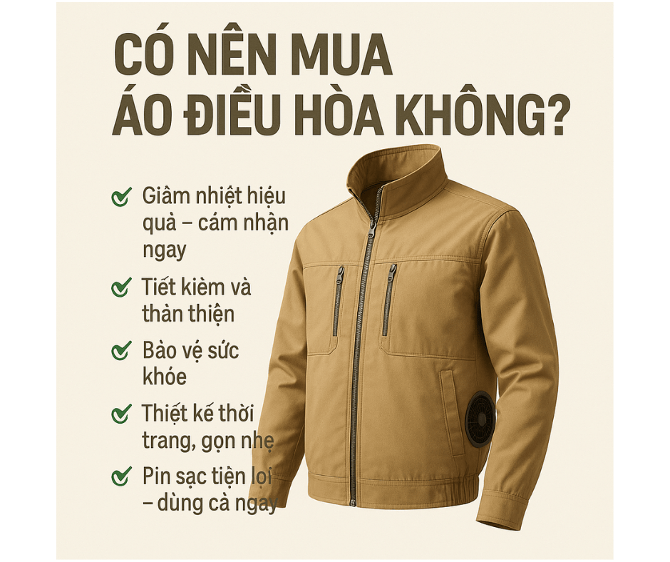 Khi mùa hè ngày càng trở nên khắc nghiệt với nền nhiệt vượt ngưỡng 40°C, câu hỏi “Có nên mua áo điều hòa không?” đang trở thành mối quan tâm lớn của nhiều người, đặc biệt là những ai thường xuyên làm việc ngoài trời. Bài viết này sẽ đưa ra cái nhìn thẳng thắn – thực tế – dễ hiểu để giúp bạn quyết định.
