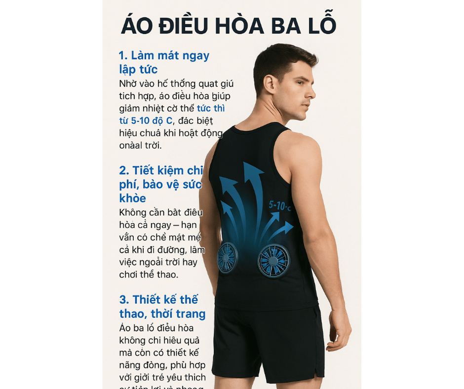 Áo ba lỗ điều hòa không chỉ hiệu quả mà còn có thiết kế năng động, phù hợp với giới trẻ yêu thích sự tiện lợi và phong cách hiện đại.