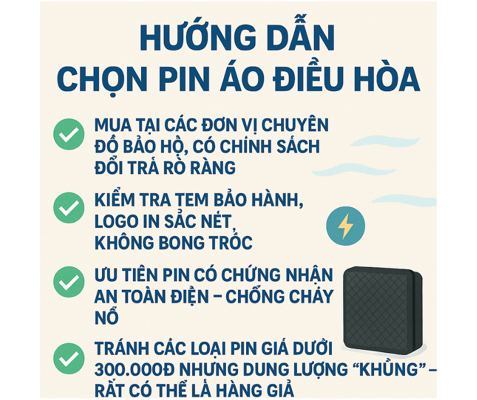 Một viên pin tốt không chỉ kéo dài thời gian sử dụng áo điều hòa mà còn đảm bảo an toàn cho bạn trong suốt mùa hè. Đừng vì rẻ vài trăm nghìn mà đánh đổi bằng nguy cơ cháy nổ hay hiệu suất làm mát kém.