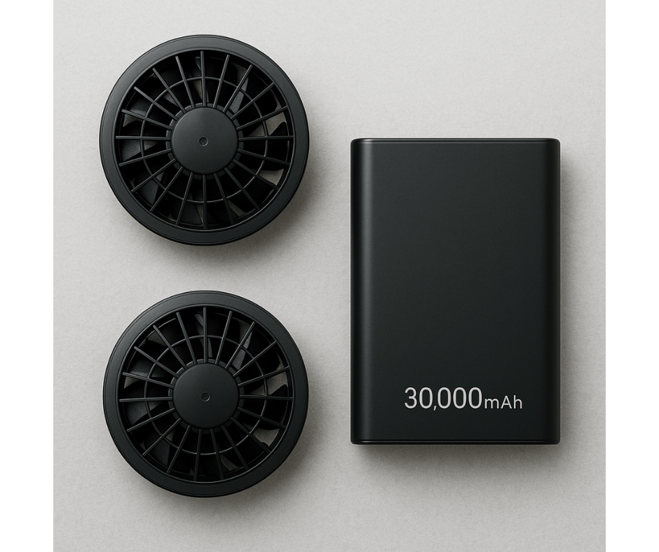 Áo sử dụng pin lithium-ion dung lượng cao, từ 20.000mAh đến 30.000mAh, cho thời gian sử dụng liên tục từ 8 đến 16 tiếng, tùy vào tốc độ quạt. Pin được trang bị đèn LED hiển thị dung lượng và trạng thái sạc, cùng với các chức năng bảo vệ quá áp, quá dòng và quá nhiệt, đảm bảo an toàn cho người dùng .