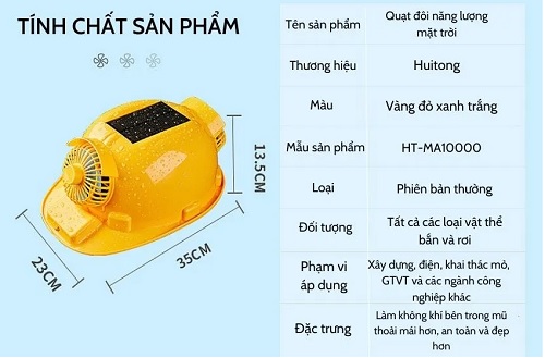 Tên sản phẩm: Mũ Bảo Hộ Gắn Quạt Chạy Bằng Năng Lượng Mặt Trời Hot 2023