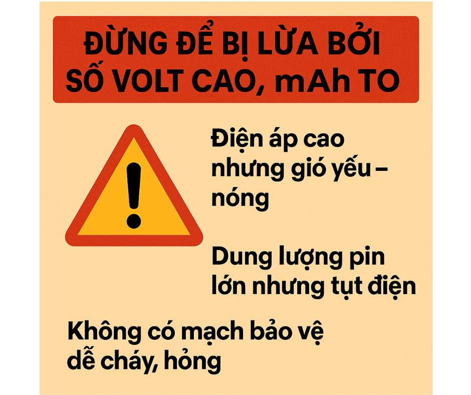 Khách hàng thường bị đánh lừa bởi tâm lý “mAh càng cao, Volt càng cao thì càng mát”. Nhưng thực tế, điều đó chỉ đúng khi đi kèm với chất lượng thật và thiết kế đúng.