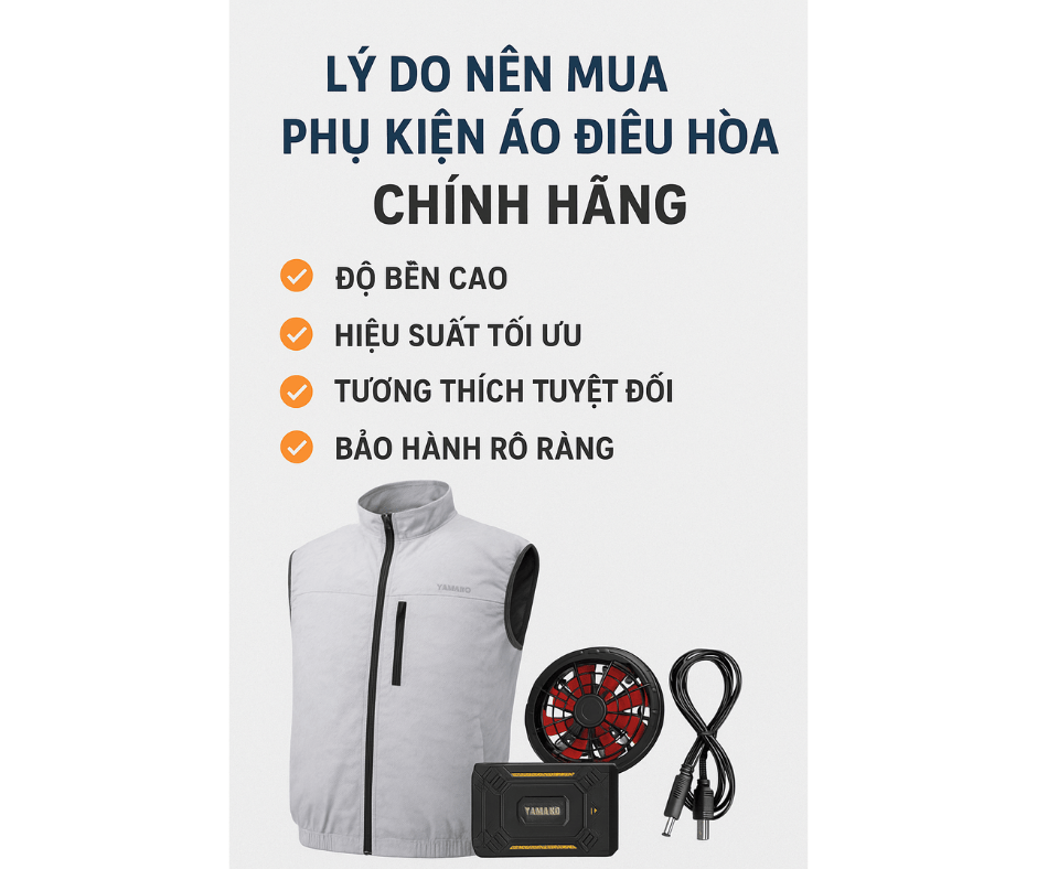 Các sản phẩm này đều được Yamako – thương hiệu áo điều hòa Nhật Bản chính hãng – cung cấp để đảm bảo tương thích và an toàn.