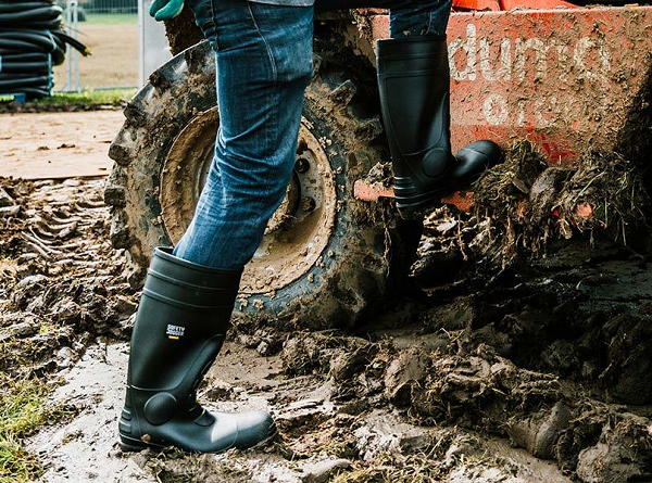 (Thiết kế của ủng bảo hộ giúp che chắn chân an toàn hơn thay vì các loại giày bảo hộ thấp cổ thông thường)
