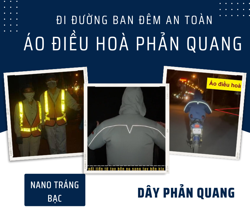 Ngoài ra, Áo điều hoà Phản quang là áo có hình viền phản quang chạy dọc xung quanh thân áo giúp cho người đi xe từ xa đã nhìn thấy vào ban đêm.