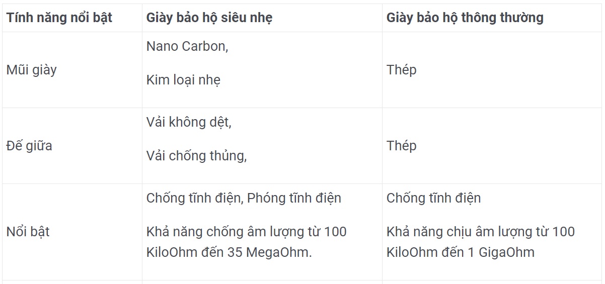 So sánh giày bảo hộ siêu nhẹ và giày bảo hộ thông thường