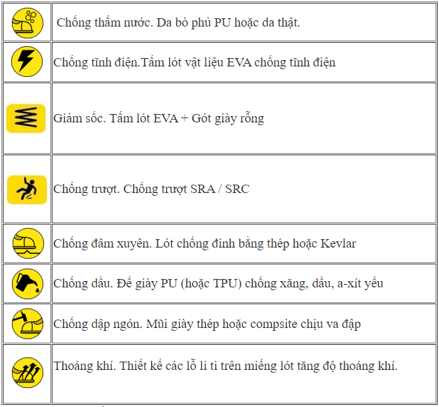 -Chức năng: Chống vật nhọn đâm xuyên như đinh, sắt thép.