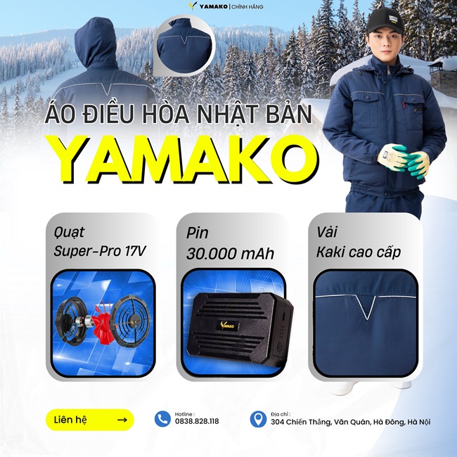 - Nắng gắt của mùa hè đang làm mất đi sức sống và hiệu suất công việc của bạn? Cải thiện cuộc sống và công việc hàng ngày của bạn với sức mạnh đến từ công nghệ Nhật Bản - Yamako, áo điều hòa tối ưu hưng không kém phần sang trọng.